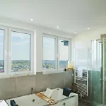 Apartamento Immo-Vision: Penthouse Wellness consta de una terraza y un vestidor con sofá y escritorio, y comodidades modernas como TV de pantalla plana con canales vía satélite. Las habitaciones cuentan con detectores de humo para seguridad. El alojamiento consta de 2 dormitorios. El apartamento tiene 2 cuartos de baño con un inodoro separado de la ducha, bañera y una ducha. Además, encontrarás secadores de pelo, artículos de tocador para huéspedes y toallas.